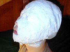 今回のターゲットは巨乳の女の子。可愛い表情だけどM。Fカップほどある巨乳を麻縄で緊縛し、Mっ気をそそらせる。スイムキャップを被らせ、顔面に液体状の硬化剤を塗っていく…。頭の上から、下まで、後ろも前も…。視界は無くなり、口には呼吸用のパイプを付けられている。そんな状態で足立監督はクリトリスを虐めたり、乳首を責めたり。最後には本番行為を強要。顔面拘束シリーズはまだまだ続きます…。