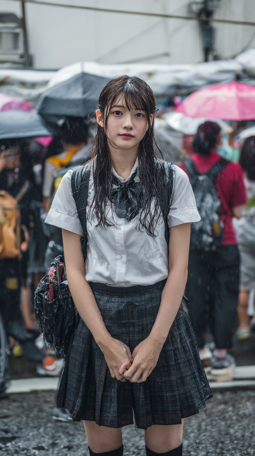 街で見かけた 東京都 多摩市 びしょ濡れ女性画像 ゲリラ豪雨