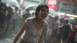 街で見かけた 愛知県 一宮市 びしょ濡れ女性画像 ゲリラ豪雨