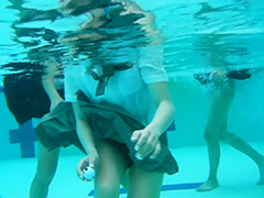 夏服BOUNS GAME 制服水泳大会第九種目夏服のままプールにあるボール拾い。ポイントが多く書いてあるボールを拾って高得点GET。夏服は、びしょ濡れになり、ブラジャーも透けて見えちゃいます。プールの中では、スカートがひらりと舞っ...
